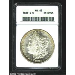 <TR><TD width="100%"><TABLE cellSpacing=1 cellPadding=3 width="100%" border=0><TBODY><TR><TD width="100%" bgColor=#79735c><FONT face=arial color=#ffffff size=3><B>Description</B> </FONT></TD></TR><TR><TD width="100%" bgColor=#ffffff><FONT face=arial size=2><B>1883-S $1 MS63 ANACS.</B></I> A seemingly prooflike representative that has freckles of honey-gold color on each side. A few wispy luster grazes do not impact the imposing eye appeal. </FONT></TD></TR></TBODY></TABLE></TD></TR></TBODY></TABLE><BR><A name=PricesRealized></A><TABLE cellSpacing=0 cellPadding=0 width="100%" bgColor=#000000 border=0><TBODY><TR><TD width="100%"><TABLE cellSpacing=1 cellPadding=3 width="100%" border=0><TBODY><TR><TD width="100%" bgColor=#79735c><A name=PR><FONT face=arial color=#ffffff size=3><B>Previous Prices from Heritage Auctions</B> </FONT></A></TD></TR><TR><TD bgColor=#f6f6ed><TABLE cellSpacing=0 cellPadding=0 width="100%" border=1><TBODY><TR><TD align=middle width="33%"><B>Date</B></TD><TD align=middle width="33%"><B>Service</B></TD><TD align=middle width="33%"><B>Price</B></TD></TR><TR bgColor=whitesmoke><TD width="33%"><B>10/01/1998</B></TD><TD width="33%">PCGS</TD><TD width="33%">$1,210.00</TD></TR><TR bgColor=whitesmoke><TD width="33%"><B>02/01/1999</B></TD><TD width="33%">PCGS</TD><TD width="33%">$1,017.00</TD></TR><TR bgColor=whitesmoke><TD width="33%"><B>11/01/1999</B></TD><TD width="33%">PCGS</TD><TD width="33%">$949.00</TD></TR><TR bgColor=whitesmoke><TD width="33%"><B>11/01/1996</B></TD><TD width="33%">PCGS</TD><TD width="33%">$1,650.00</TD></TR><TR bgColor=whitesmoke><TD width="33%"><B>09/01/1998</B></TD><TD width="33%">PCGS</TD><TD width="33%">$1,092.00</TD></TR><TR bgColor=whitesmoke><TD width="33%"><B>03/01/1999</B></TD><TD width="33%">PCGS</TD><TD width="33%">$1,093.00</TD></TR><TR bgColor=whitesmoke><TD width="33%"><B>03/01/1999</B></TD><TD width="33%">PCGS</TD><TD width="33%">$1,610.00</TD></TR><TR bgColor=whitesmoke><TD width="33%"><B>11/23/2002</B></TD><TD width="33%">PCGS</TD><TD width="33%">$1,552.50</TD></TR><TR bgColor=whitesmoke><TD width="33%"><B>11/12/2002</B></TD><TD width="33%">PCGS</TD><TD width="33%">$1,121.25</TD></TR><TR bgColor=whitesmoke><TD width="33%"><B>09/28/2002</B></TD><TD width="33%">PCGS</TD><TD width="33%">$1,092.50</TD></TR><TR bgColor=whitesmoke><TD width="33%"><B>09/28/2002</B></TD><TD width="33%">PCGS</TD><TD width="33%">$1,000.50</TD></TR><TR bgColor=whitesmoke><TD width="33%"><B>09/17/2002</B></TD><TD width="33%">PCGS</TD><TD width="33%">$1,150.00</TD></TR><TR bgColor=whitesmoke><TD width="33%"><B>05/27/2001</B></TD><TD width="33%">PCGS</TD><TD width="33%">$1,380.00</TD></TR><TR bgColor=whitesmoke><TD width="33%"><B>07/30/2002</B></TD><TD width="33%">PCGS</TD><TD width="33%">$1,207.50</TD></TR><TR bgColor=whitesmoke><TD width="33%"><B>05/21/2002</B></TD><TD width="33%">PCGS</TD><TD width="33%">$1,121.25</TD></TR><TR bgColor=whitesmoke><TD width="33%"><B>04/23/2002</B></TD><TD width="33%">PCGS</TD><TD width="33%">$1,121.25</TD></TR><TR bgColor=whitesmoke><TD width="33%"><B>04/27/2002</B></TD><TD width="33%">PCGS</TD><TD width="33%">$1,092.50</TD></TR><TR bgColor=whitesmoke><TD width="33%"><B>04/02/2002</B></TD><TD width="33%">PCGS</TD><TD width="33%">$1,092.50</TD></TR><TR bgColor=whitesmoke><TD width="33%"><B>02/05/2002</B></TD><TD width="33%">PCGS</TD><TD width="33%">$1,207.50</TD></TR><TR bgColor=whitesmoke><TD width="33%"><B>01/12/2002</B></TD><TD width="33%">PCGS</TD><TD width="33%">$1,092.50</TD></TR><TR bgColor=whitesmoke><TD width="33%"><B>01/12/2002</B></TD><TD width="33%">PCGS</TD><TD width="33%">$1,121.25</TD></TR><TR bgColor=whitesmoke><TD width="33%"><B>01/12/2002</B></TD><TD width="33%">PCGS</TD><TD width="33%">$1,391.50</TD></TR><TR bgColor=whitesmoke><TD width="33%"><B>10/06/2001</B></TD><TD width="33%">PCGS</TD><TD width="33%">$1,150.00</TD></TR><TR bgColor=whitesmoke><TD width="33%"><B>08/08/2001</B></TD><TD width="33%">PCGS</TD><TD width="33%">$1,265.00</TD></TR><TR bgColor=whitesmoke><TD width="33%"><B>05/01/2001</B></TD><TD width="33%">PCGS</TD><TD width="33%">$1,050.00</TD></TR><TR bgColor=whitesmoke><TD width="33%"><B>04/05/2001</B></TD><TD width="33%">PCGS</TD><TD width="33%">$402.50</TD></TR><TR bgColor=whitesmoke><TD width="33%"><B>03/18/1998</B></TD><TD width="33%">PCGS</TD><TD width="33%">$1,705.00</TD></TR><TR bgColor=whitesmoke><TD width="33%"><B>01/05/2001</B></TD><TD width="33%">PCGS</TD><TD width="33%">$1,725.00</TD></TR><TR bgColor=whitesmoke><TD width="33%"><B>01/07/2000</B></TD><TD width="33%">PCGS</TD><TD width="33%">$1,150.00</TD></TR><TR bgColor=whitesmoke><TD width="33%"><B>06/04/1999</B></TD><TD width="33%">PCGS</TD><TD width="33%">$1,265.00</TD></TR><TR bgColor=whitesmoke><TD width="33%"><B>02/03/1993</B></TD><TD width="33%">PCGS</TD><TD width="33%">$852.50</TD></TR><TR bgColor=whitesmoke><TD width="33%"><B>04/14/2000</B></TD><TD width="33%">PCGS</TD><TD width="33%">$1,063.75</TD></TR><TR bgColor=whitesmoke><TD width="33%"><B>06/03/1998</B></TD><TD width="33%">PCGS</TD><TD width="33%">$1,243.00</TD></TR><TR bgColor=whitesmoke><TD width="33%"><B>01/16/2001</B></TD><TD width="33%">PCGS</TD><TD width="33%">$1,050.00</TD></TR><TR bgColor=whitesmoke><TD width="33%"><B>01/05/2001</B></TD><TD width="33%">PCGS</TD><TD width="33%">$1,150.00</TD></TR><TR bgColor=whitesmoke><TD width="33%"><B>03/12/1993</B></TD><TD width="33%">PCGS</TD><TD width="33%">$907.50</TD></TR><TR bgColor=whitesmoke><TD width="33%"><B>02/12/2000</B></TD><TD width="33%">PCGS</TD><TD width="33%">$1,006.25</TD></TR><TR bgColor=whitesmoke><TD width="33%"><B>01/08/2000</B></TD><TD width="33%">PCGS</TD><TD width="33%">$1,150.00</TD></TR><TR bgColor=whitesmoke><TD width="33%"><B>08/16/1995</B></TD><TD width="33%">PCGS</TD><TD width="33%">$797.50</TD></TR><TR bgColor=whitesmoke><TD width="33%"><B>02/24/1995</B></TD><TD width="33%">PCGS</TD><TD width="33%">$1,155.00</TD></TR><TR bgColor=whitesmoke><TD width="33%"><B>03/16/1996</B></TD><TD width="33%">PCGS<