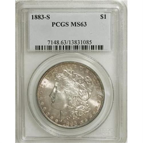 <B>1883-S $1 MS63 PCGS.</B></I> Sharply struck with flashy luster and brilliant centers. The slightly hazy peripheral zones have purple-gray base patina with splashes of green. A lightly abraded, yet pleasing example of this San Francisco issue, one less available than its counterparts of two and three years before.<BR><BR><B>Coin Engraver:</B> George T. Morgan<BR><BR><b>Shipping:</b> Coins & Currency (<a target="_blank" href="http://www.heritageauctions.com/common/shipping.php">view shipping information</a>\)