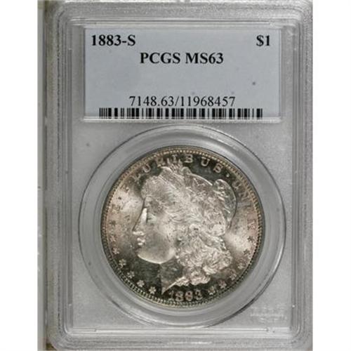 <B>1883-S $1 MS63 PCGS.</B></I> Cherry-red and golden-brown embrace the peripheries of this lustrous and crisply struck representative. Light marks are distributed, but none are of particular significance. The 1883-S is elusive in Uncirculated grades, although the issue lacks the notoriety of its 1884-S successor.<BR><BR><B>Coin Engraver:</B> George T. Morgan<BR><BR><b>Shipping:</b> Coins & Currency (<a target="_blank" href="http://www.heritageauctions.com/common/shipping.php">view shipping information</a>)