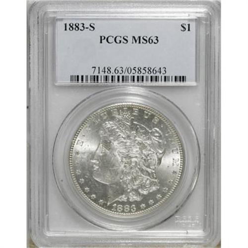<B>1883-S $1 MS63 PCGS.</B></I> Essentially untoned, lustrous surfaces reveal a few grade-defining marks, especially on the obverse. Generally well struck, with minor softness in the centers.<BR><BR><B>Coin Engraver:</B> George T. Morgan<BR><BR><b>Shipping:</b> Coins & Currency (<a target="_blank" href="http://www.heritageauctions.com/common/shipping.php">view shipping information</a>)