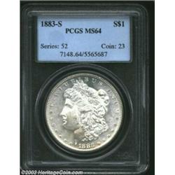 <TR><TD width="100%"><TABLE cellSpacing=1 cellPadding=3 width="100%" border=0><TBODY><TR><TD width="100%" bgColor=#79735c><FONT face=arial color=#ffffff size=3><B>Description</B> </FONT></TD></TR><TR><TD width="100%" bgColor=#ffffff><FONT face=arial size=2><B>1883-S $1 MS64 PCGS.</B></I> Fully brilliant with strong central details and just a few scattered surface marks that are perhaps a bit more serious on the obverse. Many Uncirculated survivors of this conditionally scarce issue can be pedigreed to the Redfield holdings and rarely do they exceed the quality of this piece. </FONT></TD></TR></TBODY></TABLE></TD></TR></TBODY></TABLE><BR><A name=PricesRealized></A><TABLE cellSpacing=0 cellPadding=0 width="100%" bgColor=#000000 border=0><TBODY><TR><TD width="100%"><TABLE cellSpacing=1 cellPadding=3 width="100%" border=0><TBODY><TR><TD width="100%" bgColor=#79735c><A name=PR><FONT face=arial color=#ffffff size=3><B>Previous Prices from Heritage Auctions</B> </FONT></A></TD></TR><TR><TD bgColor=#f6f6ed><TABLE cellSpacing=0 cellPadding=0 width="100%" border=1><TBODY><TR><TD align=middle width="33%"><B>Date</B></TD><TD align=middle width="33%"><B>Service</B></TD><TD align=middle width="33%"><B>Price</B></TD></TR><TR bgColor=whitesmoke><TD width="33%"><B>11/23/2002</B></TD><TD width="33%">PCGS</TD><TD width="33%">$2,760.00</TD></TR><TR bgColor=whitesmoke><TD width="33%"><B>05/01/2001</B></TD><TD width="33%">PCGS</TD><TD width="33%">$2,760.00</TD></TR><TR bgColor=whitesmoke><TD width="33%"><B>01/09/2002</B></TD><TD width="33%">PCGS</TD><TD width="33%">$2,875.00</TD></TR><TR bgColor=whitesmoke><TD width="33%"><B>08/09/2000</B></TD><TD width="33%">PCGS</TD><TD width="33%">$2,875.00</TD></TR><TR bgColor=whitesmoke><TD width="33%"><B>03/01/2003</B></TD><TD width="33%">PCGS</TD><TD width="33%">$2,760.00</TD></TR><TR bgColor=whitesmoke><TD width="33%"><B>02/01/2001</B></TD><TD width="33%">PCGS</TD><TD width="33%">$3,450.00</TD></TR><TR bgColor=whitesmoke><TD width="33%"><B>08/06/2001</B></TD><TD width="33%">PCGS</TD><TD width="33%">$4,140.00</TD></TR><TR bgColor=whitesmoke><TD width="33%"><B>04/27/2002</B></TD><TD width="33%">PCGS</TD><TD width="33%">$2,875.00</TD></TR><TR bgColor=whitesmoke><TD width="33%"><B>08/13/1999</B></TD><TD width="33%">PCGS</TD><TD width="33%">$3,576.50</TD></TR><TR bgColor=whitesmoke><TD width="33%"><B>05/05/2000</B></TD><TD width="33%">PCGS</TD><TD width="33%">$2,530.00</TD></TR><TR bgColor=whitesmoke><TD width="33%"><B>10/07/1995</B></TD><TD width="33%">PCGS</TD><TD width="33%">$3,300.00</TD></TR><TR bgColor=whitesmoke><TD width="33%"><B>01/01/1995</B></TD><TD width="33%">PCGS</TD><TD width="33%">$3,025.00</TD></TR><TR bgColor=whitesmoke><TD width="33%"><B>11/01/1999</B></TD><TD width="33%">PCGS</TD><TD width="33%">$4,235.00</TD></TR><TR bgColor=whitesmoke><TD width="33%"><B>08/01/1999</B></TD><TD width="33%">PCGS</TD><TD width="33%">$3,795.00</TD></TR><TR bgColor=whitesmoke><TD width="33%"><B>02/01/2000</B></TD><TD width="33%">PCGS</TD><TD width="33%">$4,830.00</TD></TR><TR bgColor=whitesmoke><TD width="33%"><B>11/01/1998</B></TD><TD width="33%">PCGS</TD><TD width="33%">$3,910.00</TD></TR><TR bgColor=whitesmoke><TD width="33%"><B>11/18/1999</B></TD><TD width="33%">PCGS</TD><TD width="33%">$3,277.50</TD></TR><TR bgColor=whitesmoke><TD width="33%"><B>01/12/2002</B></TD><TD width="33%">PCGS</TD><TD width="33%">$2,760.00</TD></TR><TR bgColor=whitesmoke><TD width="33%"><B>03/04/1995</B></TD><TD width="33%">PCGS</TD><TD width="33%">$2,090.00</TD></TR><TR bgColor=whitesmoke><TD width="33%"><B>06/06/1998</B></TD><TD width="33%">PCGS</TD><TD width="33%">$9,487.50</TD></TR><TR bgColor=whitesmoke><TD width="33%"><B>11/01/1996</B></TD><TD width="33%">PCGS</TD><TD width="33%">$2,915.00</TD></TR><TR bgColor=whitesmoke><TD width="33%"><B>03/04/1995</B></TD><TD width="33%">PCGS</TD><TD width="33%">$4,620.00</TD></TR><TR bgColor=whitesmoke><TD width="33%"><B>11/25/2002</B></TD><TD width="33%">NGC</TD><TD width="33%">$2,301.15</TD></TR><TR bgColor=whitesmoke><TD width="33%"><B>04/27/2002</B></TD><TD width="33%">NGC</TD><TD width="33%">$2,300.00</TD></TR><TR bgColor=whitesmoke><TD width="33%"><B>10/22/1993</B></TD><TD width="33%">NGC</TD><TD width="33%">$1,650.00</TD></TR><TR bgColor=whitesmoke><TD width="33%"><B>02/23/2001</B></TD><TD width="33%">NGC</TD><TD width="33%">$2,498.95</TD></TR><TR bgColor=whitesmoke><TD width="33%"><B>09/01/1999</B></TD><TD width="33%">NGC</TD><TD width="33%">$3,048.00</TD></TR><TR bgColor=whitesmoke><TD width="33%"><B>11/01/1998</B></TD><TD width="33%">NGC</TD><TD width="33%">$2,760.00</TD></TR><TR bgColor=whitesmoke><TD width="33%"><B>03/01/1999</B></TD><TD width="33%">NGC</TD><TD width="33%">$3,105.00</TD></TR><TR bgColor=whitesmoke><TD width="33%"><B>03/01/2000</B></TD><TD width="33%">NGC</TD><TD width="33%">$3,105.00</TD></TR><TR bgColor=whitesmoke><TD width="33%"><B>10/06/2001</B></TD><TD width="33%">NGC</TD><TD width="33%">$2,300.00</TD></TR><TR bgColor=whitesmoke><TD width="33%"><B>08/08/2001</B></TD><TD width="33%">NGC</TD><TD width="33%">$2,415.00</TD></TR><TR bgColor=whitesmoke><TD width="33%"><B>09/22/1999</B></TD><TD width="33%">NGC</TD><TD width="33%">$2,900.00</TD></TR><TR bgColor=whitesmoke><TD width="33%"><B>09/24/1999</B></TD><TD width="33%">NGC</TD><TD width="33%">$2,875.00</TD></TR><TR bgColor=whitesmoke><TD width="33%"><B>01/10/1998</B></TD><TD width="33%">NGC</TD><TD width="33%">$2,875.00</TD></TR><TR bgColor=whitesmoke><TD width="33%"><B>10/10/1999</B></TD><TD width="33%">NGC</TD><TD width="33%">$2,809.45</TD></TR><TR bgColor=whitesmoke><TD width="33%"><B>03/23/2003</B></TD><TD width="33%">ANACS</TD><TD width="33%">$5,290.00</TD></TR><TR bgColor=whitesmoke><TD width="33%"><B>08/02/1997</B></TD><TD width="33%">ANACS</TD><TD width="33%">$1,092.50</TD></TR></TBODY></TABLE></TD></TR><TR><TD bgColor=#ffffff><FONT face=arial size=1 ?>PLEASE NOTE: All prices realized reflect the final hammer price PLUS the buyer's premium in auctions that charge