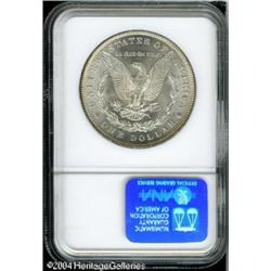 1883 S$1 MS66 NGC. Vivid sea-green, rose, and tan <B>1883 S$1 MS66 NGC.</B></I> Vivid sea-green, rose, and tan colors dominate the obverse, while the reverse is fully brilliant. A lustrous and nicely struck piece with an occasional tiny mint-made planchet flake in the fields. <BR><BR><B>Important notice:</B> Heritage usually auctions material at the rate of 200-250 lots per hour. On some occasions eBay Live bid software or the Internet may not be able to keep up with the pace of the auction. We recommend placing a realistic absentee bid now as insurance to avoid disappointment. Occasionally the auctioneer may eliminate or reject an eBay Live bid, and the auctioneer may also reopen a lot after the close of the eBay live bidding (usually because we missed an audience bid), and may reject your bid even if it shows you as the winning bidder. By bidding via eBay Live, you agree that Heritage may award the lot to another bidder at its sole discretion under the circumstances described above or any other reasonable circumstances. Since eBay bids are not shown to us until we open the lot on the floor, we treat those bids just like floor bids. In most cases the floor responds before the eBay bid is presented to us, due to Internet lag time, so for consistency we have made it a policy that floor bids are always considered first over tie eBay live bids. Also please note that all Heritage lots purchased through eBay Live carry a 20% Buyer's Premium. Please make sure you read the Terms and Conditions before you bid. This lot is being auctioned in conjunction with a live floor auction by Heritage Galleries & Auctioneers. All final auction and invoice information will be supplied by Heritage Galleries & Auctioneers, and all other information should be considered preliminary. Lot:7432