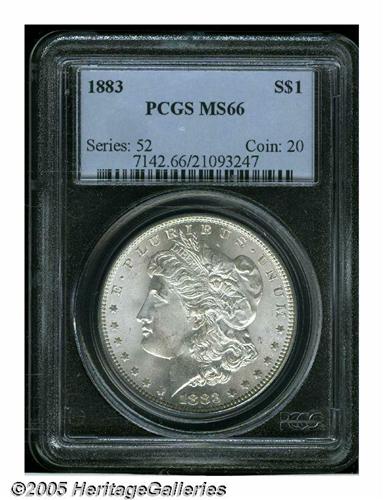 <B>1883<S$1> MS66 PCGS.</B></I> The creamy-white surfaces are boldly struck in all areas and have come away virtually unscathed from coin-to-coin contact.