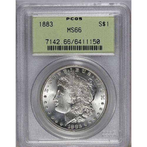 <B>1883<img border='0' src='http://www.heritagecoins.com/images/star.gif' width=10 height=10>$1> MS66 PCGS.</B></I> This lustrous and nearly brilliant Premium Gem is attentively struck and refreshingly unperturbed by contact. Certified in an older green label holder.