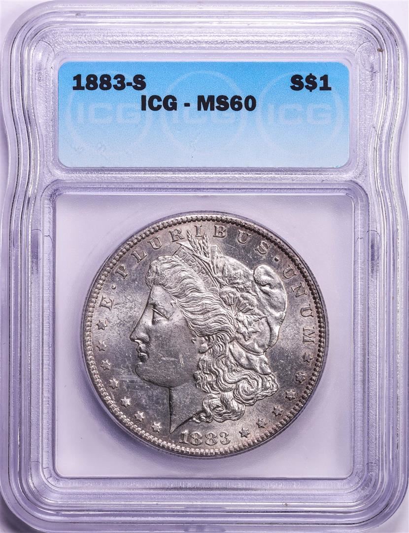 One 1883-S $1 Morgan Silver Dollar Coin ICG MS60. ICG Certified.