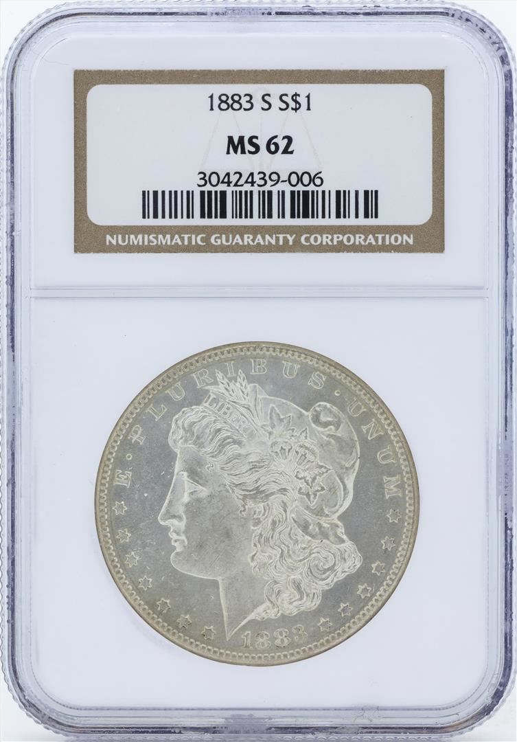 One 1883-S $1 Morgan Silver Dollar Coin NGC MS62. NGC Certified.