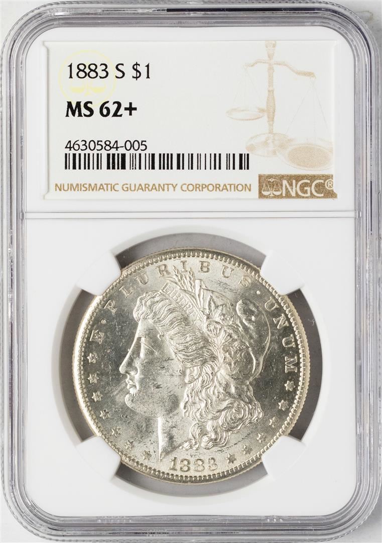 One 1883-S $1 Morgan Silver Dollar Coin NGC MS62+. NGC Certified.