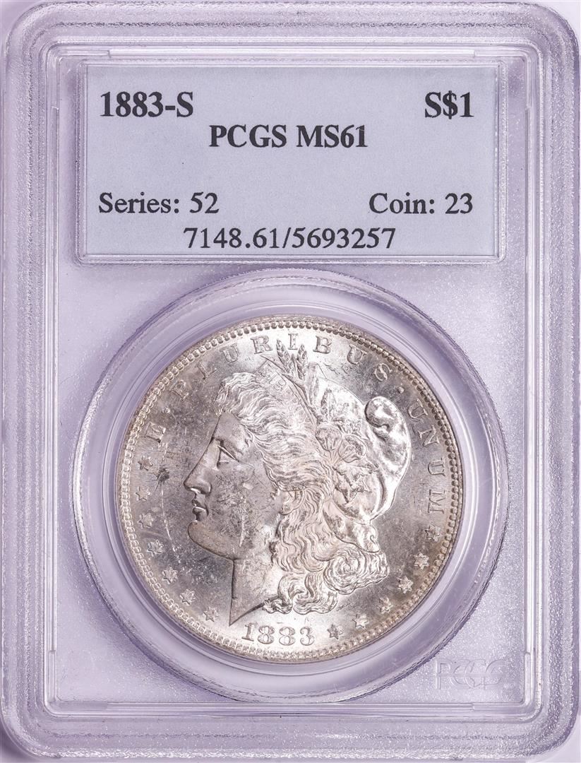 One 1883-S $1 Morgan Silver Dollar Coin PCGS MS61. PCGS Graded.