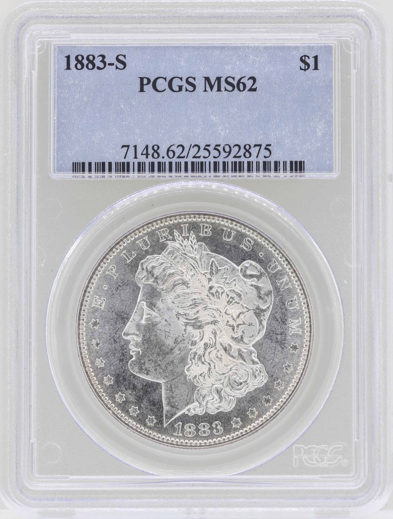 One 1883-S $1 Morgan Silver Dollar Coin PCGS MS62.