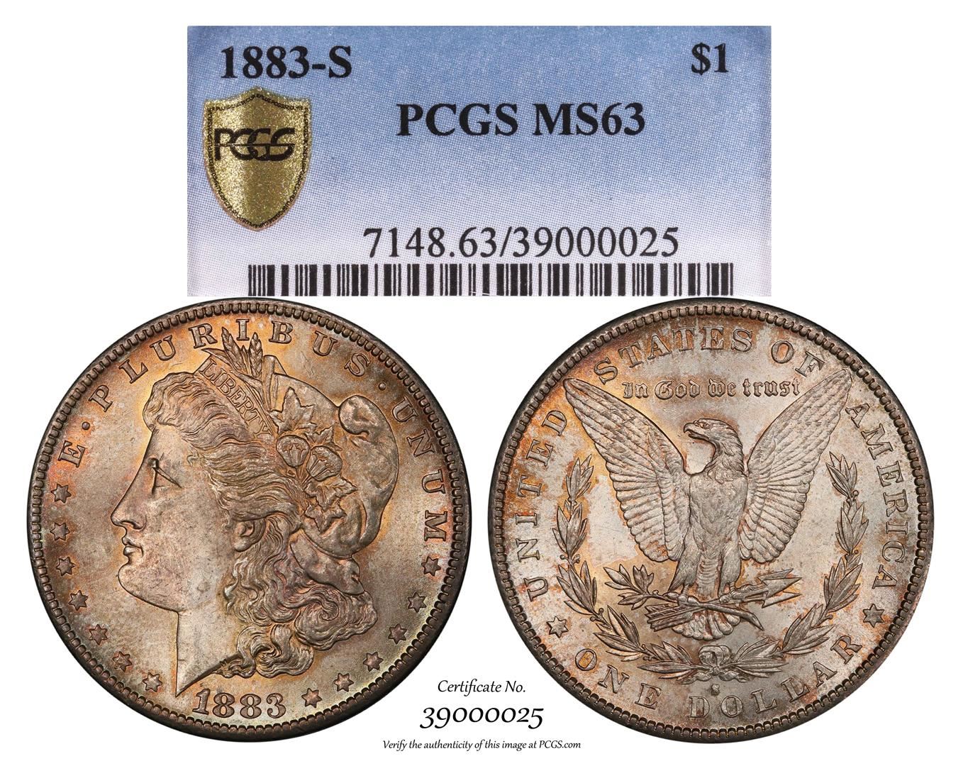 One 1883-S $1 Morgan Silver Dollar Coin PCGS MS63. PCGS Graded.