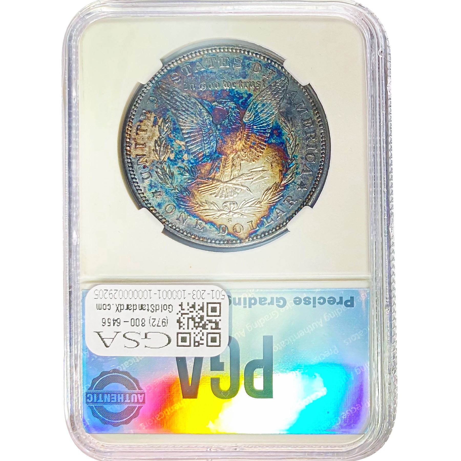 e. Coins sold referencing a third-party grading service are sold “AS IS” without any express or implied warranty, except for a guarantee by GSA that they are genuine. Removal or alteration of the holder, voids all of Bidder’s claims concerning that Product. Certain warranties may be available from the grading services and Bidders are referred to them for further details: Numismatic Guaranty Corporation (NGC), PO Box 4776, Sarasota, FL 34230, www.ngccoin.com/services/writtenguarantee.asp; Professional Coin Grading Services (PCGS), PO Box 9458, Newport Beach, CA 92658, www.pcgs.com/guarantee.html; ANACS, 6555 S. Kenton St., Ste. 303, Englewood, CO 80111; and Independent Coin Grading Co. (ICG), 7901 East Bellview, Ave., Suite 50, Englewood, CO 80111.