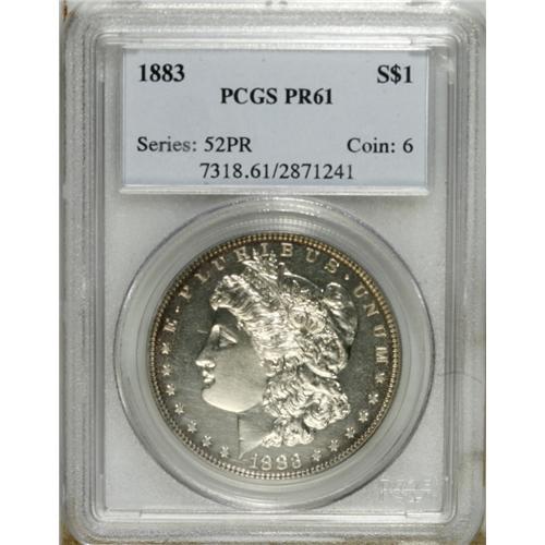 <B>1883 S$1 PR61 PCGS.</B></I> The design elements are exquisitely struck throughout on this early Morgan proof. Numerous wispy hairlines in the steel-gray fields account for the grade.<BR><BR><b>Shipping:</b> Coins & Currency (<a target="_blank" href="http://www.heritageauctions.com/common/shipping.php">view shipping information</a>)