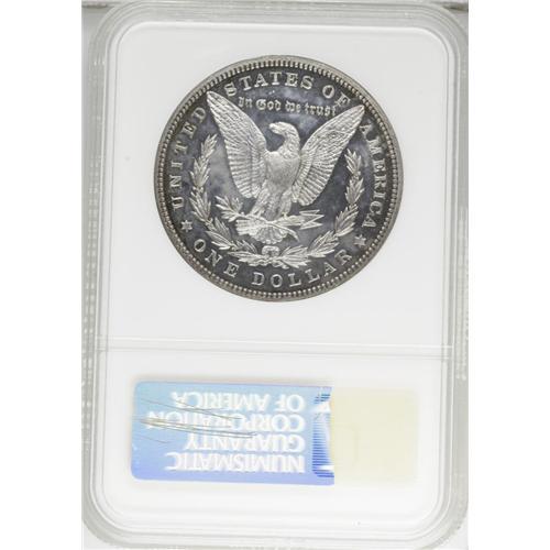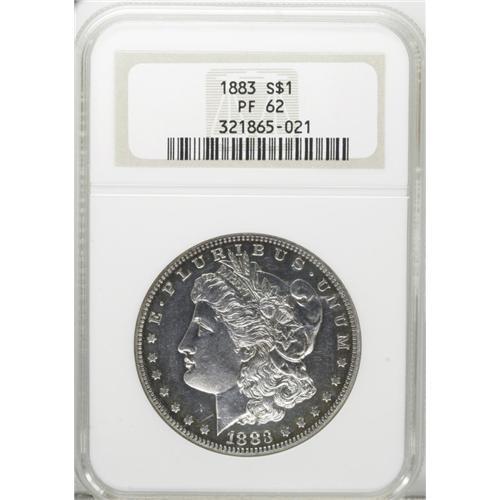 <B>1883 S$1 PR62 NGC.</B></I> Glassy reflectivity in the fields offsets exquisitely struck design elements, and medium intensity cobalt-blue, lavender, and golden-brown patination hugs the rim areas, framing the brilliant centers. Some inoffensive faint hairlines preclude a higher grade.<BR><BR><b>Shipping:</b> Coins & Currency (<a target="_blank" href="http://www.heritageauctions.com/common/shipping.php">view shipping information</a>)