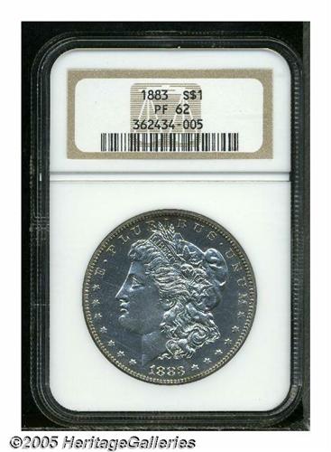1883 S$1 PR62 NGC. Sharply struck, with glassy re