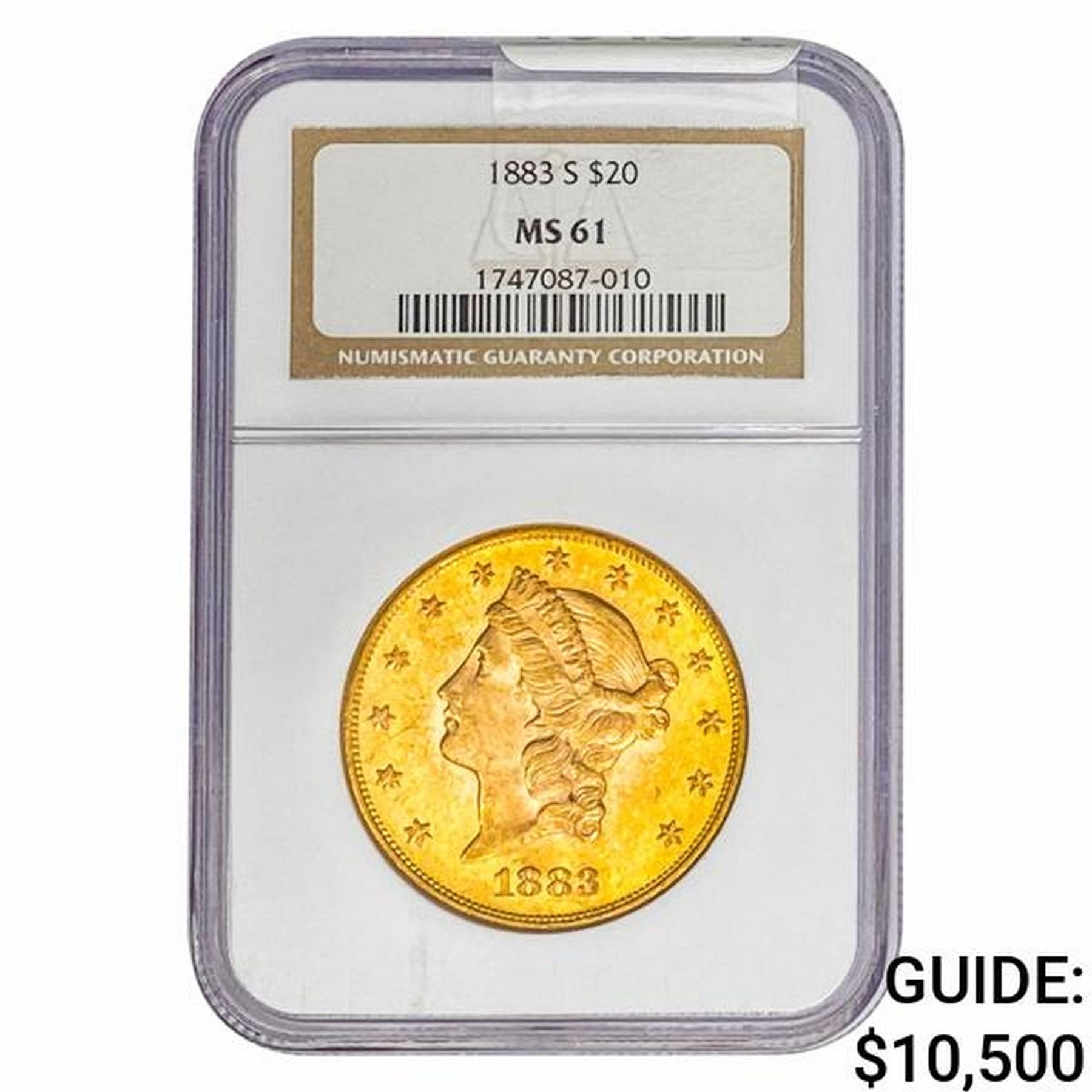 1883-S $20 Gold Double Eagle NGC MS61