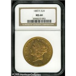 <B>1883-S $20 MS60 NGC.</B></I> The fields are bright and semi-prooflike and each side displays even reddish tinged coloration.<BR><I>From The Mike Jacobson Collection.</B></I> Lot:9172