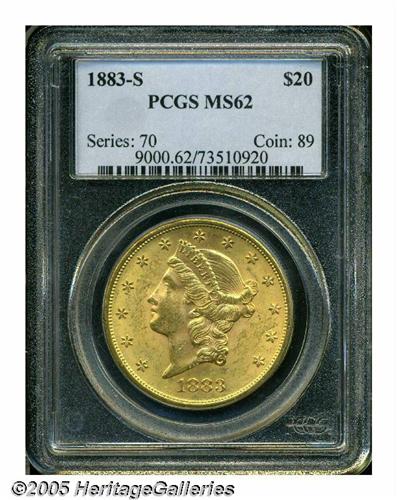 1883-S $20 MS62 PCGS. Lustrous and well struck, w