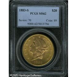 <B>1883-S $20 MS62 PCGS.</B></I> Premium quality for the grade with radiant luster, a bold strike, and surfaces that are free from significant marks.<BR><I>Ex: 1999 FUN Signature Sale (Heritage 1/99).</B></I><BR><I>From The Richard J. Chouinard Collection of United States Coins, Part Two.</B></I> Lot:9173