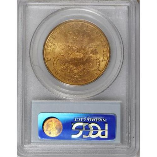 <B>1883-S $20 MS62 PCGS.</B></I> An interesting example for the collector of 19th century gold. The well-defined devices and luminous fields are predominantly yellow-orange, though some alloy spots are present in the right obverse field. Still, a pleasing S-mint piece.<BR><BR><B>Coin Engraver:</B> James B. Longacre<BR><BR><b>Shipping:</b> Coins & Currency (<a target="_blank" href="http://www.heritageauctions.com/common/shipping.php">view shipping information</a>)
