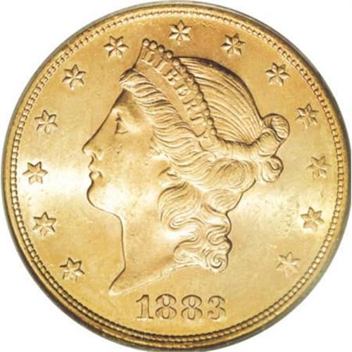 <B>1883-S $20 MS63 PCGS.</B></I> This piece displays blazing mint frost and alluring copper-red and mint-green toning. Well struck, with remarkably crisp design elements that are especially sharp on Liberty's central hair detail. Jeff Garrett and Ron Guth note that "most of the survivors are heavily bagmarked", but this example only shows a modicum of small, scattered marks on each side. Just fifteen coins have been graded at MS64, by NGC and PCGS combined, and--significantly--none are finer, as of (1/08). <BR><BR><B>Coin Engraver:</B> James B. Longacre<BR><BR><b>Shipping:</b> Coins & Currency (<a target="_blank" href="http://www.heritageauctions.com/common/shipping.php">view shipping information</a>)