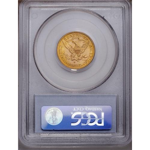 <B>1883-S<$5> MS62 PCGS.</B></I> Well struck with shimmering luster and lovely coloration that includes pink-green shadings near the centers and deeper apricot-orange patina near the peripheries. One moderate blemish on Liberty's cheek and a number of trivial field marks on each side define the numerical grade level of the piece, without ruining the eye appeal of this lustrous, pleasingly toned example. A low mintage half eagle issue, conditionally scarce in Mint State. Population: 27 in 62, 12 finer (3/06). <BR><BR><B>Important notice:</B> Heritage usually auctions material at the rate of 200-250 lots per hour. On some occasions eBay Live bid software or the Internet may not be able to keep up with the pace of the auction. We recommend placing a realistic absentee bid now as insurance to avoid disappointment. Occasionally the auctioneer may eliminate or reject an eBay Live bid, and the auctioneer may also reopen a lot after the close of the eBay live bidding (usually because we missed an audience bid), and may reject your bid even if it shows you as the winning bidder. By bidding via eBay Live, you agree that Heritage may award the lot to another bidder at its sole discretion under the circumstances described above or any other reasonable circumstances. Since eBay bids are not shown to us until we open the lot on the floor, we treat those bids just like floor bids. In most cases the floor responds before the eBay bid is presented to us, due to Internet lag time, so for consistency we have made it a policy that floor bids are always considered first over tie eBay live bids. Also please note that all Heritage lots purchased through eBay Live carry a 20% Buyer's Premium. Please make sure you read the Terms and Conditions before you bid. This lot is being auctioned in conjunction with a live floor auction by Heritage Galleries & Auctioneers. All final auction and invoice information will be supplied by Heritage Galleries & Auctioneers, and all other information should be considered preliminary. Lot:2809 <BR><BR><B>Winning Notification and Billing:</B> After the FINAL session in this auction is complete, Heritage will send e-mail and snail mail invoices. This process normally takes several days. All final auction and invoice information will be supplied by Heritage Galleries & Auctioneers, and all other information should be considered preliminary. <BR><BR>This auction will be conducted on a live auction floor and over the Internet through eBay Live. If you choose to place an absentee bid, please take a moment to <font color='#0000ff'><u><a href='http://pages.ebay.com/liveauctions/help/before/laabsentee.html'>learn how eBay Live absentee bidding works</a></u></font><font color='#000000'>