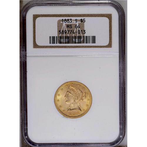 1883-S $5 MS64 NGC. The 1883-S, with a mintage of 83,2 1883-S[$5] MS64 NGC.