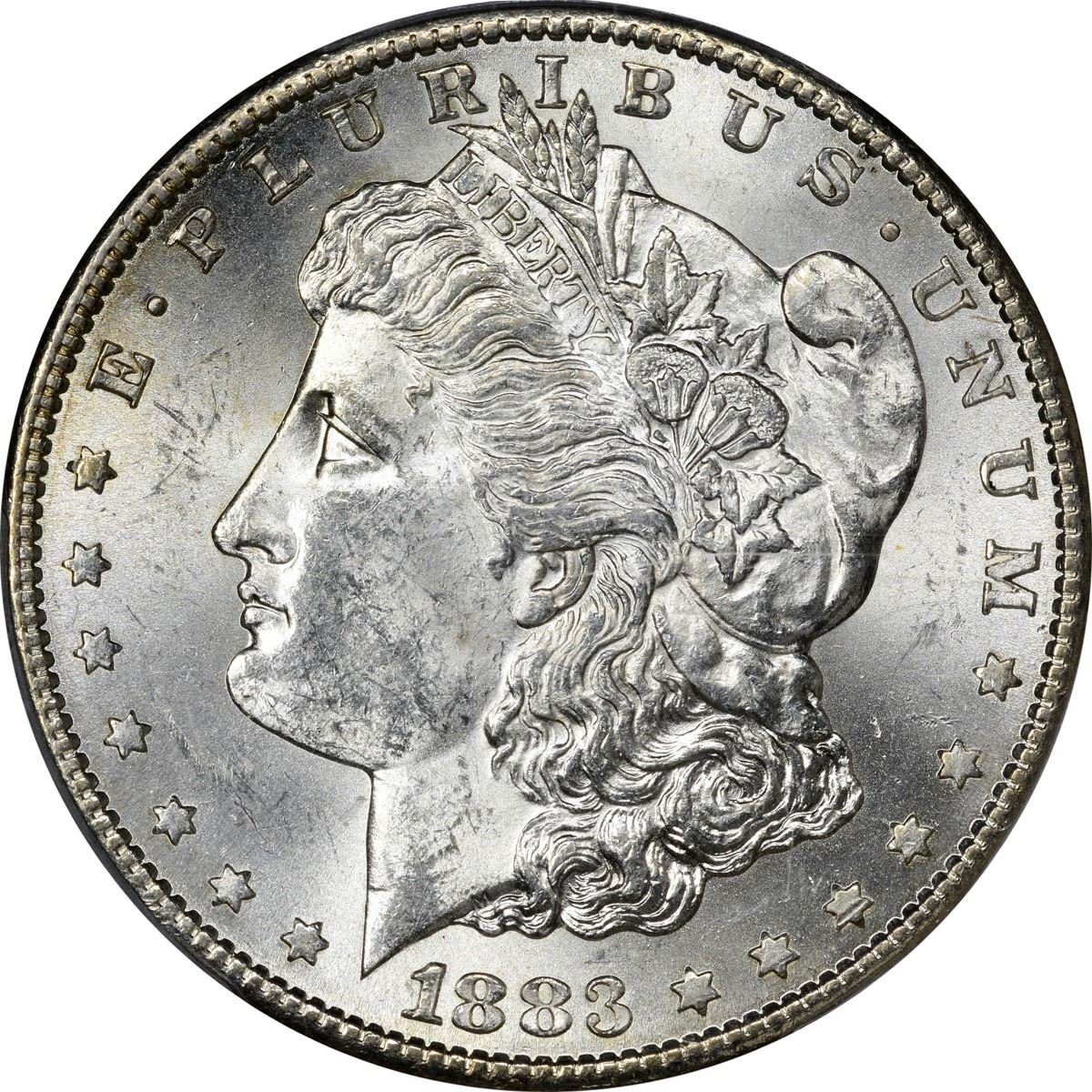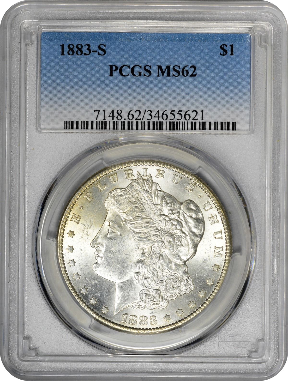 Here is a Mint State 1883-S Morgan dollar that will prove well worth the time and effort to study. Fully brilliant, sharply struck, and highly lustrous, this specimen of this semi-key date makes us wonder just when MS-62 ends and MS-63 begins; the reverse is easily a point -- or more -- finer than the obverse, and the obverse was the cause of the MS-62 vs MS-63 comment in the first place. We’ll call this one “on the cusp” and let the viewer decide. Though 6.25 million examples of the date were struck, the 1883-S Morgan has proven itself to be a challenge to collectors seeking Mint State examples. Much of the mintage was released into general circulation, and the fresh Uncirculated examples of the date in today’s – or even yesterday’s – marketplace are not readily found. Impressive for the date and grade at every turn; it will take more than good intentions to bring this coin home. PCGS #7148