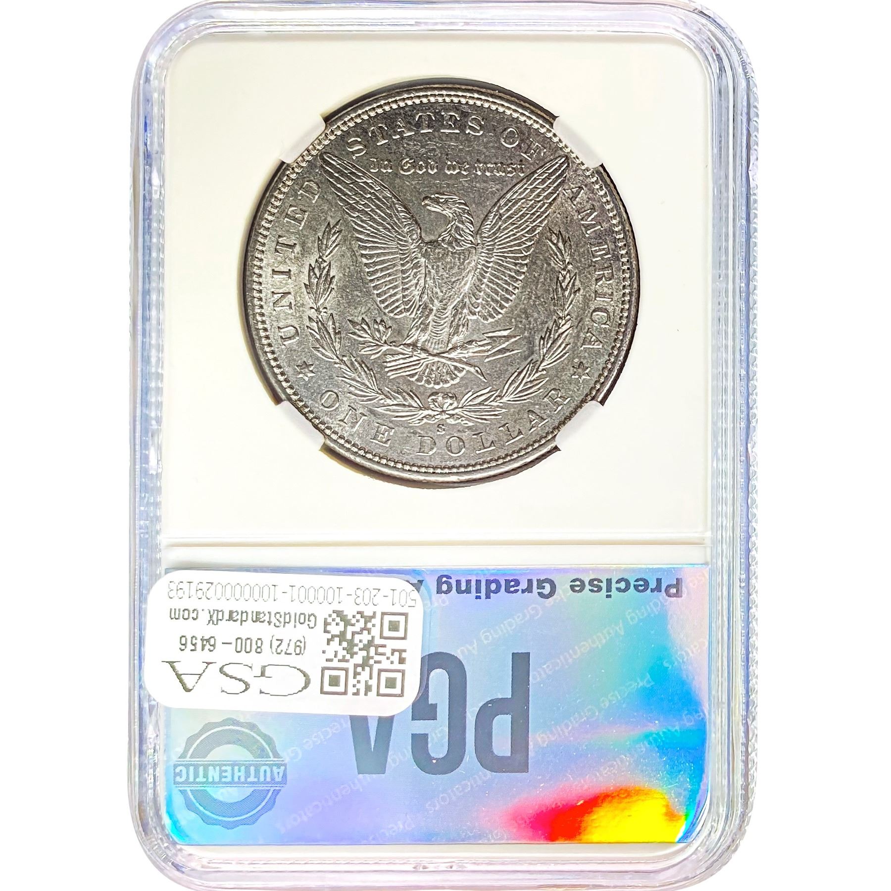 e. Coins sold referencing a third-party grading service are sold “AS IS” without any express or implied warranty, except for a guarantee by GSA that they are genuine. Removal or alteration of the holder, voids all of Bidder’s claims concerning that Product. Certain warranties may be available from the grading services and Bidders are referred to them for further details: Numismatic Guaranty Corporation (NGC), PO Box 4776, Sarasota, FL 34230, www.ngccoin.com/services/writtenguarantee.asp; Professional Coin Grading Services (PCGS), PO Box 9458, Newport Beach, CA 92658, www.pcgs.com/guarantee.html; ANACS, 6555 S. Kenton St., Ste. 303, Englewood, CO 80111; and Independent Coin Grading Co. (ICG), 7901 East Bellview, Ave., Suite 50, Englewood, CO 80111.