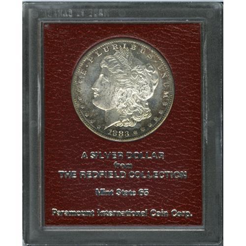 <B>1883-S S$1 Morgan Dollar MS65 Paramount (MS62).</B></I> Ex: Redfield and housed in the red plastic holder as sold by Paramount. Prooflike with light cameo contrast and peripheral iridescence.<BR><BR><b>Shipping:</b> Coin/Currency (<a target="_blank" href="http://www.heritageauctions.com/common/shipping.php">view shipping information</a>)
