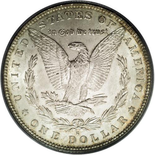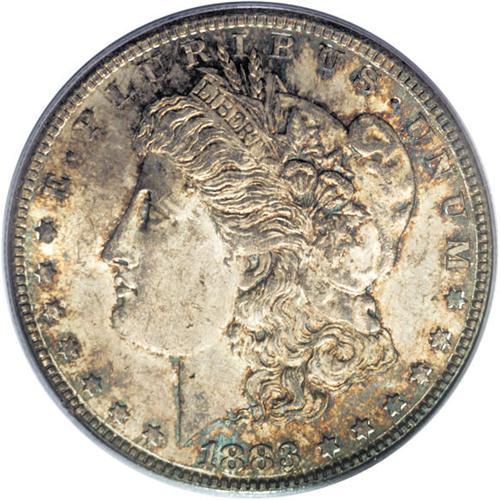 <B>1883-S S$1 MS63 PCGS.</B></I> The 1883-S has the status of a semi-key issue. It is the first really challenging S-mint in the Morgan dollar series. At the MS63 level this coin represents excellent value, as the next level is considerably higher in price. This is an obviously original example that has dusky russet obverse toning that deepens around the devices, complementing tinges of ice-blue, while the reverse is light silver-gray with an accent of golden-rose around the devices. Sharply struck throughout, and showing no obvious or distracting marks.<BR><BR><b>Shipping:</b> Coins & Currency (<a target="_blank" href="http://www.heritageauctions.com/common/shipping.php">view shipping information</a>)