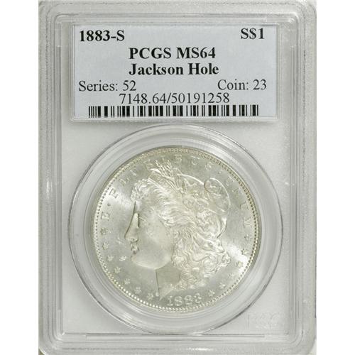 <B>1883-S S$1 MS64 PCGS.</B></I> Ex: Jackson Hole. The first of the difficult S-mint Morgans, the 1883-S is here represented by a lovely specimen that is somewhat prooflike on each side, although not noted on the holder. The surfaces are extraordinarily brilliant, untoned, well struck, and devoid of singularly distracting marks. PCGS has graded 17 coins finer (2/07).<BR><I>From The Jackson Hole Collection.</B></I><BR><BR><b>Shipping:</b> Coins & Currency (<a target="_blank" href="http://www.heritageauctions.com/common/shipping.php">view shipping information</a>)