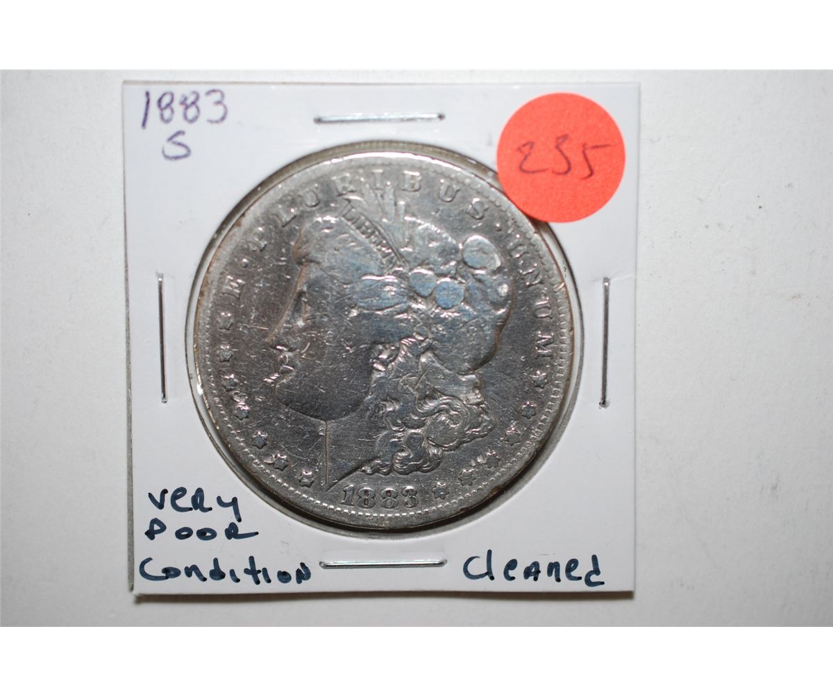 1883-S Silver Morgan $1; Very Poor Condition; Cleaned; EST. $20-30