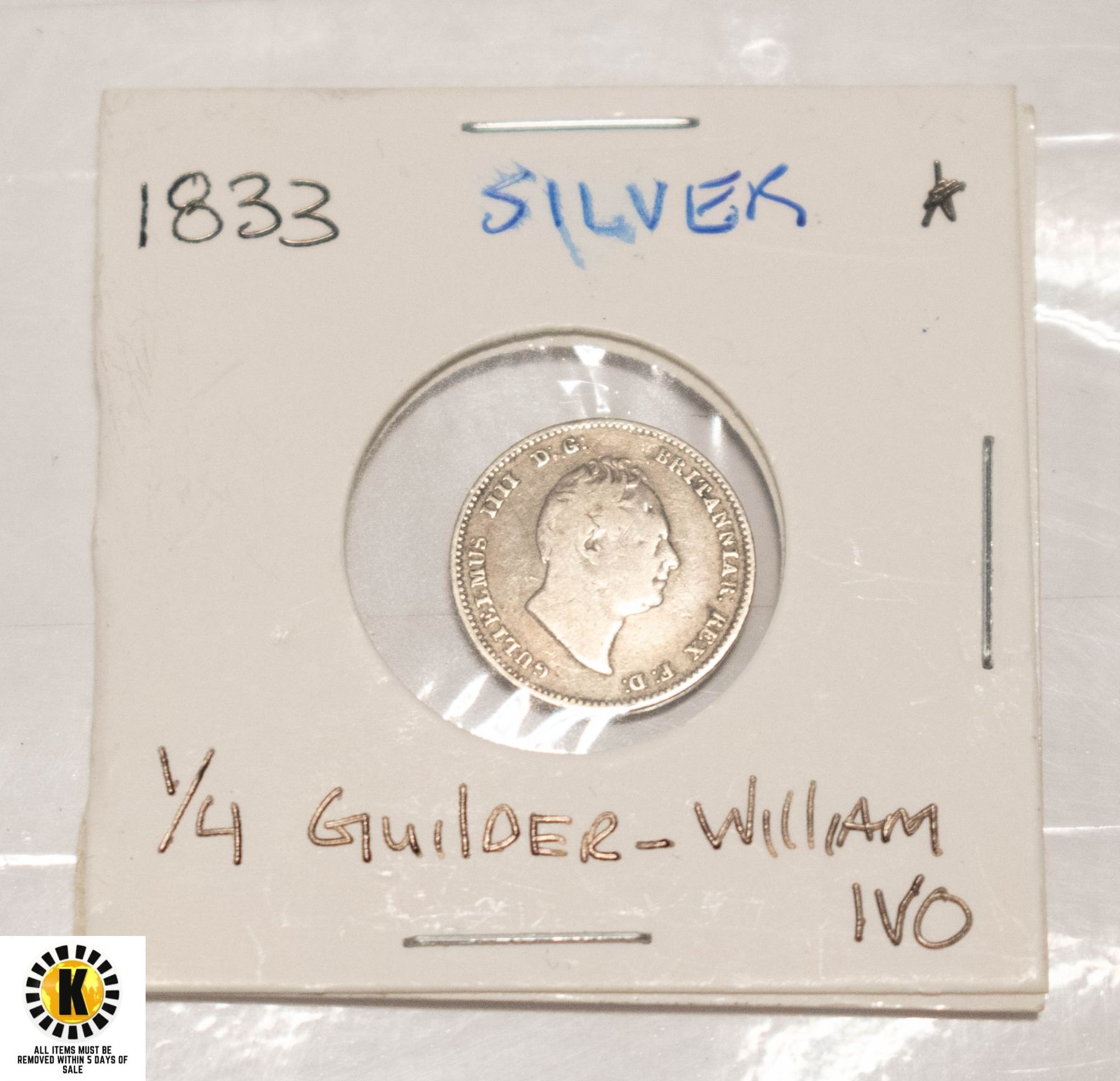 1883 SILVER 1/4 GUILDER-WILLIAM IVO