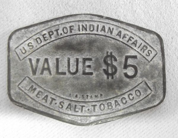San Carlos Apache Reservation Arizona Territory 1883 $5.00 Trade Token Dept Indian Affairs Measures 1.5'' x 2'' Lot #146