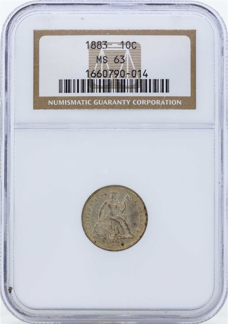 One 1883 Seated Liberty Dime Coin NGC MS63. NGC Certified.