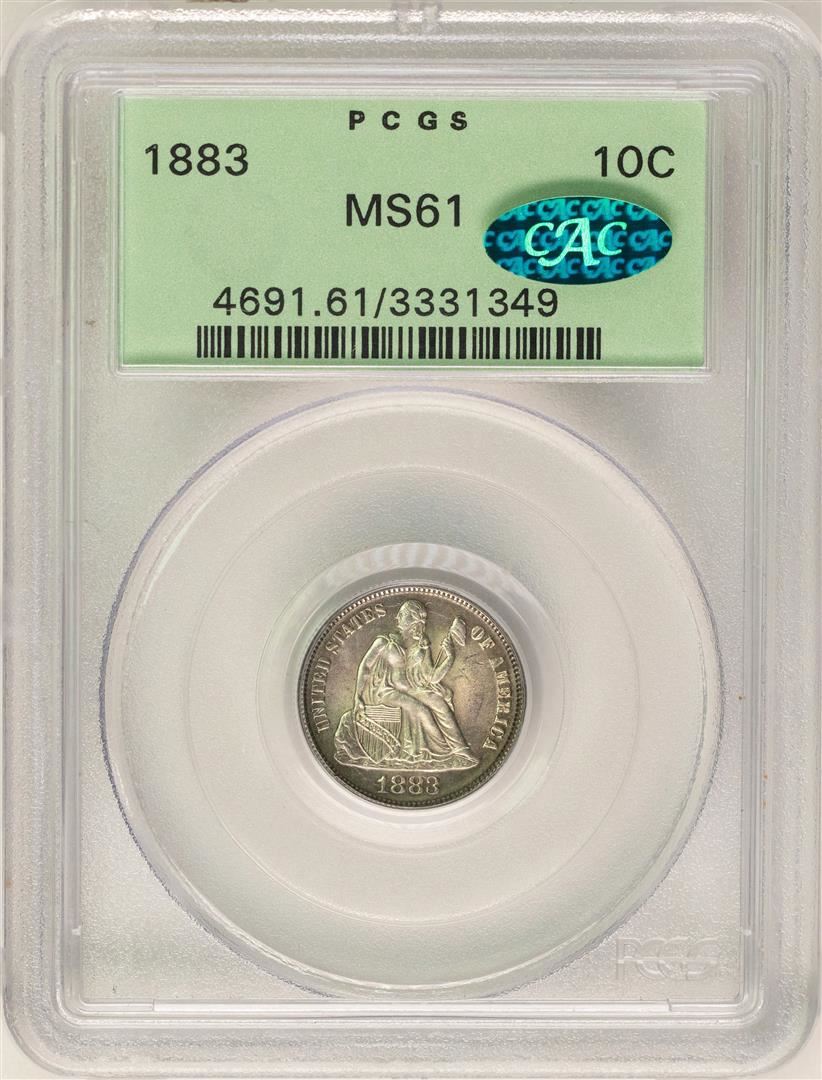 One 1883 Seated Liberty Dime Coin PCGS MS61 CAC Old Green Holder. PCGS Graded.