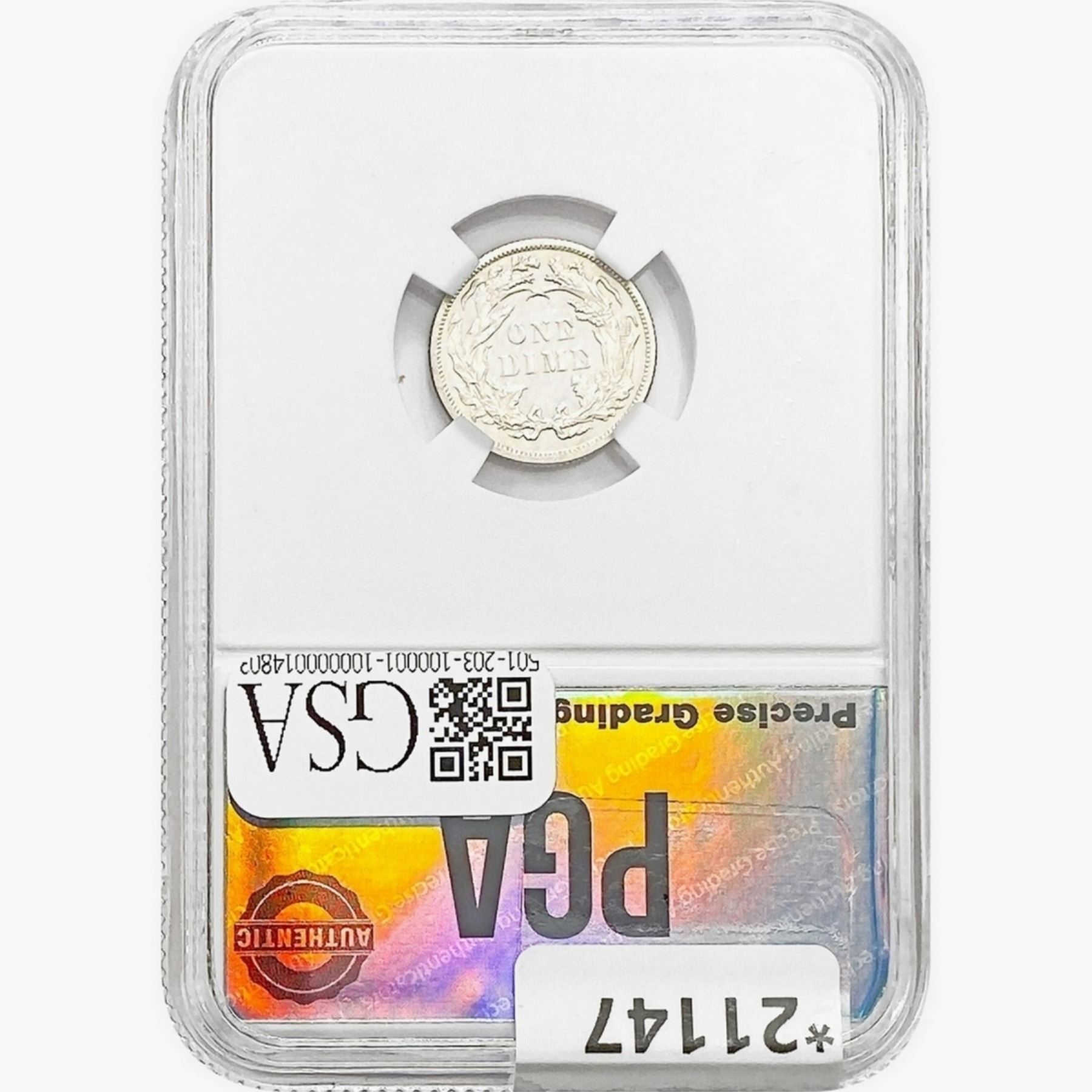 COINS AND CURRENCY LISTED IN GSA’S CATALOG AS GRADED AND ENCAPSULATED BY PCGS, NGC, ANACS, ICG, PCGS CURRENCY, PMG, PCGS BANKNOTE GRADING, CMC OR ANY OTHER THIRD-PARTY GRADING SERVICE ARE LIKEWISE SOLD “AS-IS” EXCEPT AS EXPRESSLY SET FORTH HEREIN. ALL THIRD-PARTY GRADING SERVICE GUARANTEES, INCLUDING AUTHENTICITY, ARE THE SOLE RESPONSIBILITY OF THE THIRD-PARTY GRADING SERVICE AND NOT WARRANTIES OR GUARANTEES OF GSA. BIDDERS SHOULD CONTACT THESE THIRD-PARTY GRADING SERVICES DIRECTLY WITH RESPECT TO ANY CLAIMS OR QUESTIONS THEY MAY HAVE CONCERNING THEIR GUARANTEES AND WARRANTIES. BIDDERS ACKNOWLEDGE AND AGREE THAT AUCTIONEER IS NOT BOUND BY OR LIABLE FOR ANY OPINION OR CERTIFICATION BY ANY THIRD-PARTY GRADING SERVICE. REMOVAL OF A PRODUCT FROM ITS PROTECTIVE CASING OR HOLDER OR ALTERATION OF ANY COIN HOLDER WAIVES ALL RIGHTS CONCERNING THE PRODUCT CONTAINED THEREIN.
