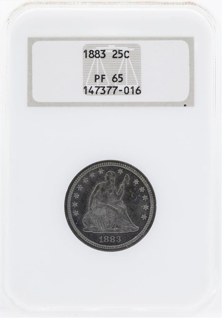 One 1883 Seated Liberty Proof Silver Quarter Coin NGC PF65. NGC Certified.