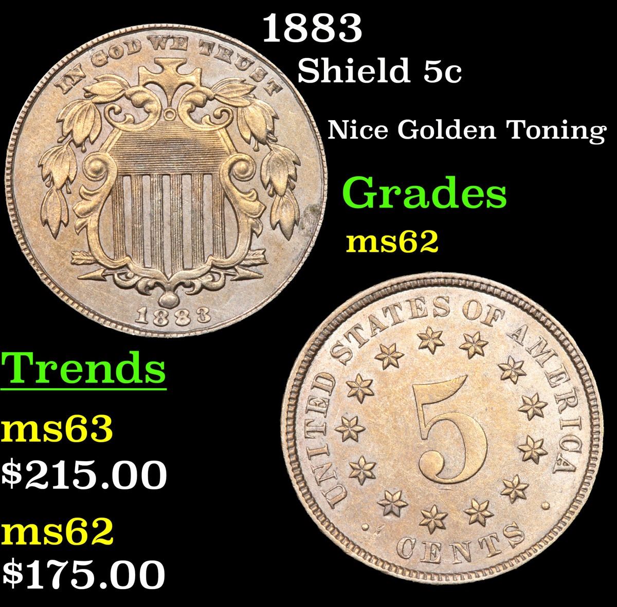 1883 Shield Nickel 5c Grades Select Unc.