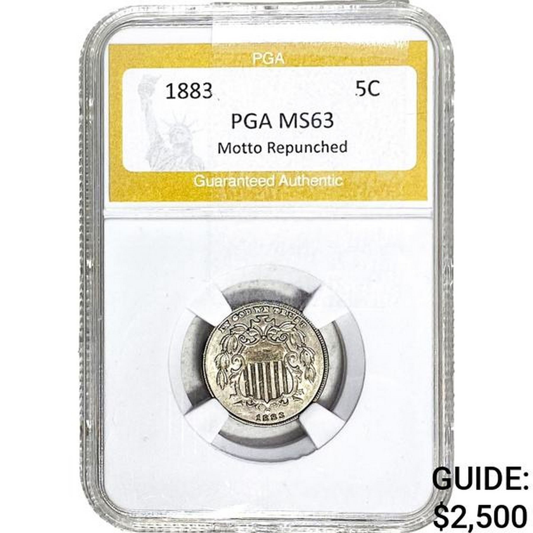 1883 Shield Nickel PGA MS63 Motto Repunched