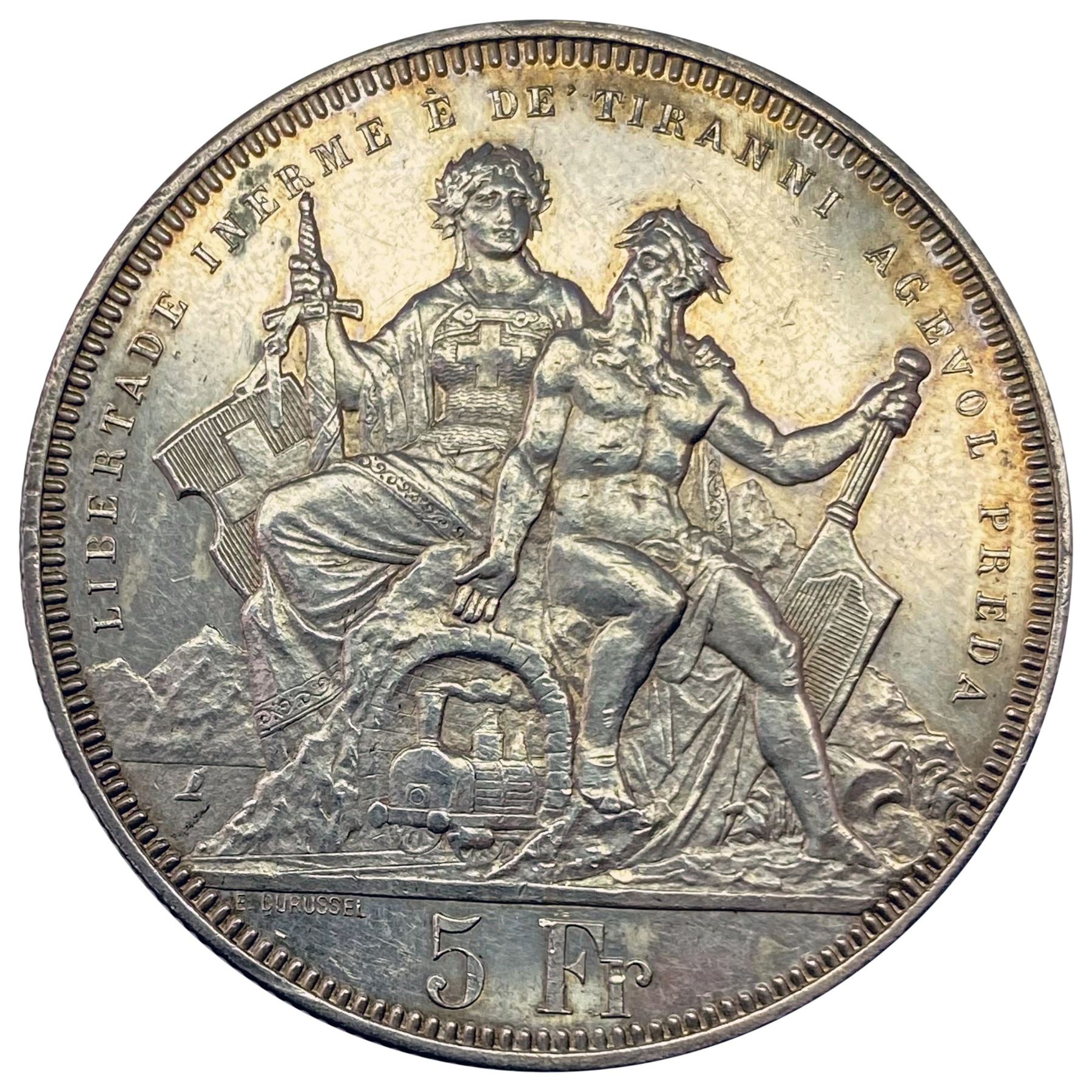 1883 Switzerland Silver 5 Francs CHOICE AU