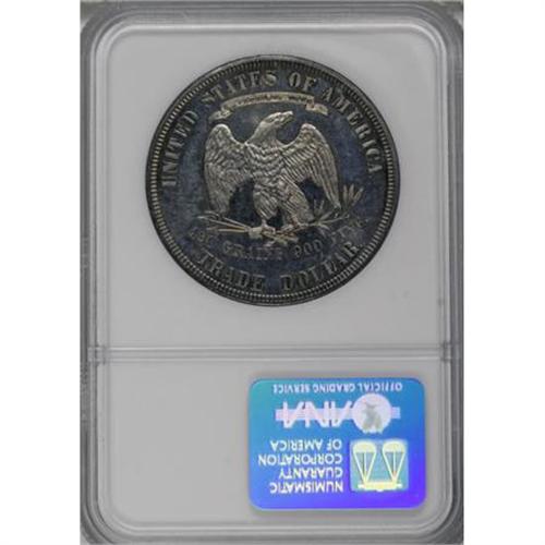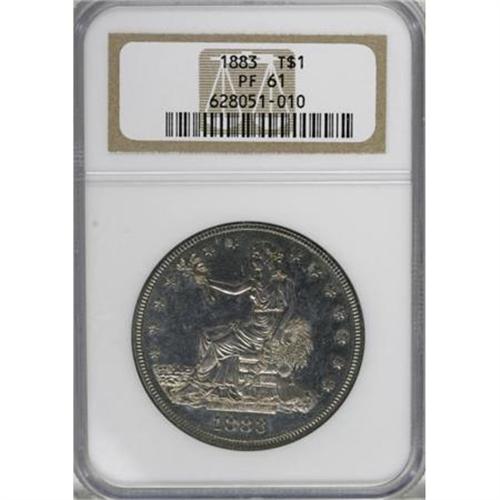 <B>1883 T$1 PR61 NGC.</B></I> A boldly impressed example of the last generally available proof Trade dollar issue, strongly reflective beneath rich blue-green patina. Extensive hairlines in the fields account for the grade.<BR><BR><B>Coin Engraver:</B> William Barber<BR><BR><b>Shipping:</b> Coins & Currency (<a target="_blank" href="http://www.heritageauctions.com/common/shipping.php">view shipping information</a>)