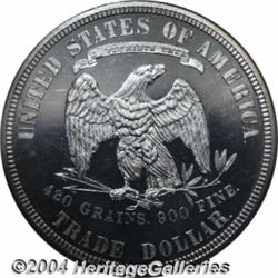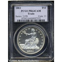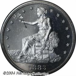 <B>1883<T$1> PR64 Cameo PCGS.</B></I> Well struck and nearly pristine, there are a few faint hairlines in the fields, but these are hardly an issue despite this coin's fully brilliant, snow-white appearance. Deeply mirrored, the fields form a splendid backdrop to the frosty-finished, crisply impressed devices. Splendid cameo contrast is fully evident on both sides, and sufficiently so to overrule any possible objection to the PR64 Cameo grade designation. This coin is a premium near-Gem, with abundant eye appeal and a high degree of technical merit as well. Population: 17 in 64 Cameo, 15 finer (7/04). <BR><BR><B>Important notice:</B> Heritage usually auctions material at the rate of 200-250 lots per hour. On some occasions eBay Live bid software or the Internet may not be able to keep up with the pace of the auction. We recommend placing a realistic absentee bid now as insurance to avoid disappointment. Occasionally the auctioneer may eliminate or reject an eBay Live bid, and the auctioneer may also reopen a lot after the close of the eBay live bidding (usually because we missed an audience bid), and may reject your bid even if it shows you as the winning bidder. By bidding via eBay Live, you agree that Heritage may award the lot to another bidder at its sole discretion under the circumstances described above or any other reasonable circumstances. Since eBay bids are not shown to us until we open the lot on the floor, we treat those bids just like floor bids. In most cases the floor responds before the eBay bid is presented to us, due to Internet lag time, so for consistency we have made it a policy that floor bids are always considered first over tie eBay live bids. Also please note that all Heritage lots purchased through eBay Live carry a 20% Buyer's Premium. Please make sure you read the Terms and Conditions before you bid. </span></font></tr></table></td></tr></table>