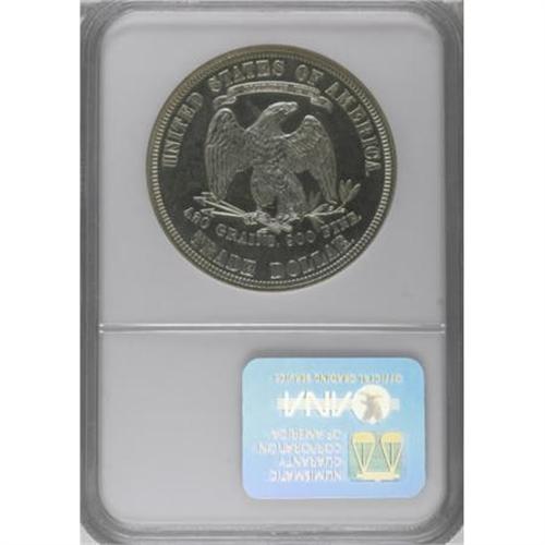 <B>1883 T$1 PR64 NGC.</B></I> Close to a Cameo designation, since the motifs exhibit even and moderate frost. Delicate gold toning prevents full brilliance. This is an intricately struck and attractive near-Gem with only a few stray field hairlines to preclude an even finer grade. By 1883, the Trade dollar had finally found popularity, at least among collectors as a proof-only issue.<BR><BR><B>Coin Engraver:</B> William Barber<BR><BR><b>Shipping:</b> Coins & Currency (<a target="_blank" href="http://www.heritageauctions.com/common/shipping.php">view shipping information</a>)