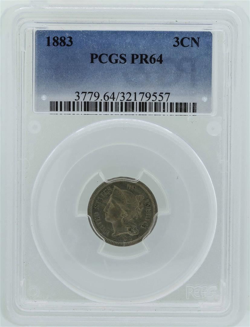 One 1883 Three Cent Piece Proof Coin PCGS PR64. PCGS Graded.