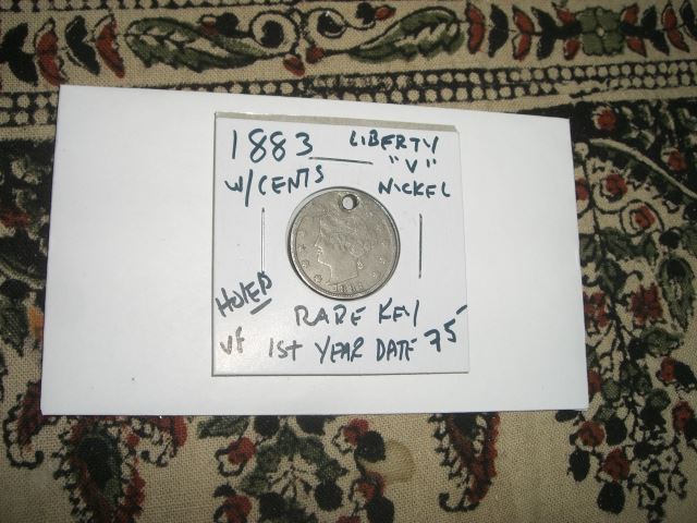 1883 WITH CENTS *RARE 1ST YEAR KEY DATE* HOLED LIBERTY "V" NICKEL RED BOOK VALUE $75.00+ *NICE EARLY VERY FINE GRADE*!! NICKEL CAME OUT OF SAFE!! ***Coin, Currency & All Items Listed in this auction - Grades, Conditions and Values are not Safe Deposit Coins LLC Responsibilty. Grades, Condition and Values are determined by Consigner(s) & Buyers ONLY***
