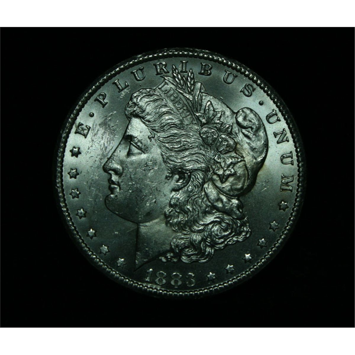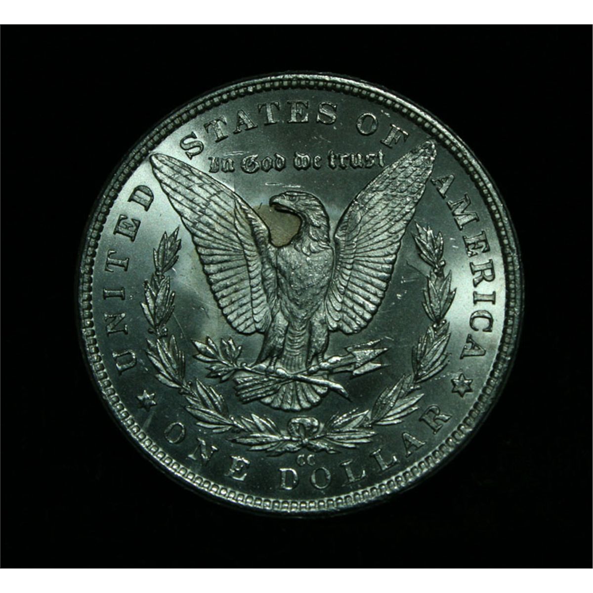 A Beautiful Blast White Carson City Morgan Dollar. Wonderful Luster, good strike. This example is also the VAM 5A which can be read about in www.vamworld.com, it has a clashed n & t, a cc/cc mintmark, and a cool die gouge at the eagles beak and a starburst at the eagles wing tip. As always with the VAMs I give my personal buyback guarantee that this is the VAM 5A. NGC's Price Guide Lists ms64 at $281. Estimated Value $250