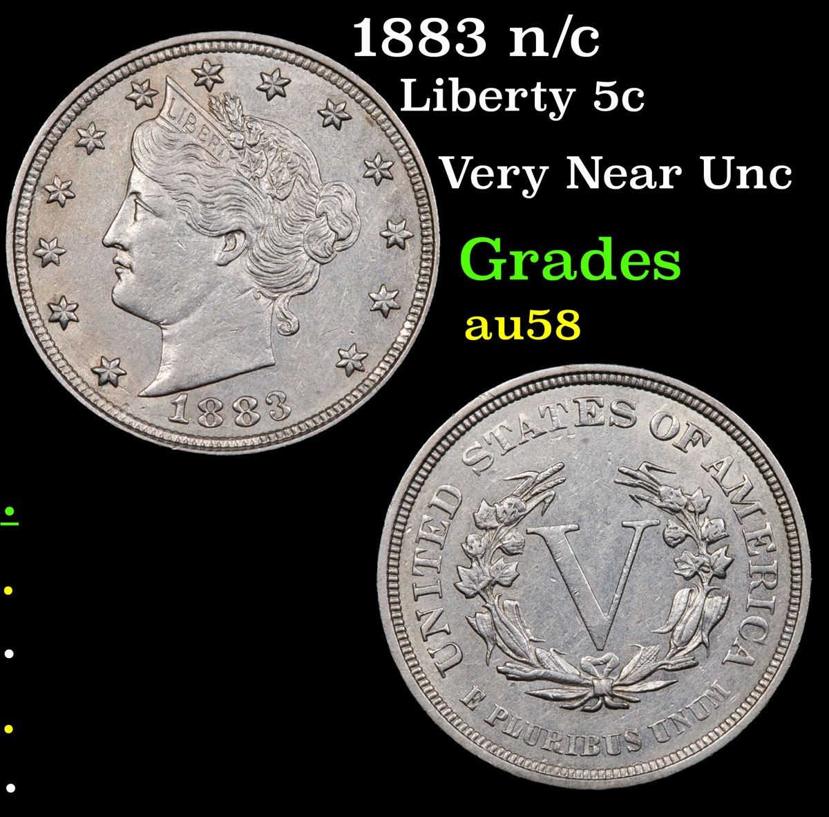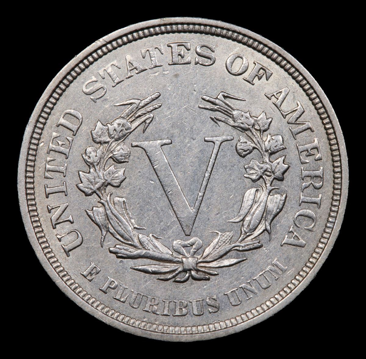 1883 n/c Liberty Nickel 5c Grades Choice AU/BU Slider.