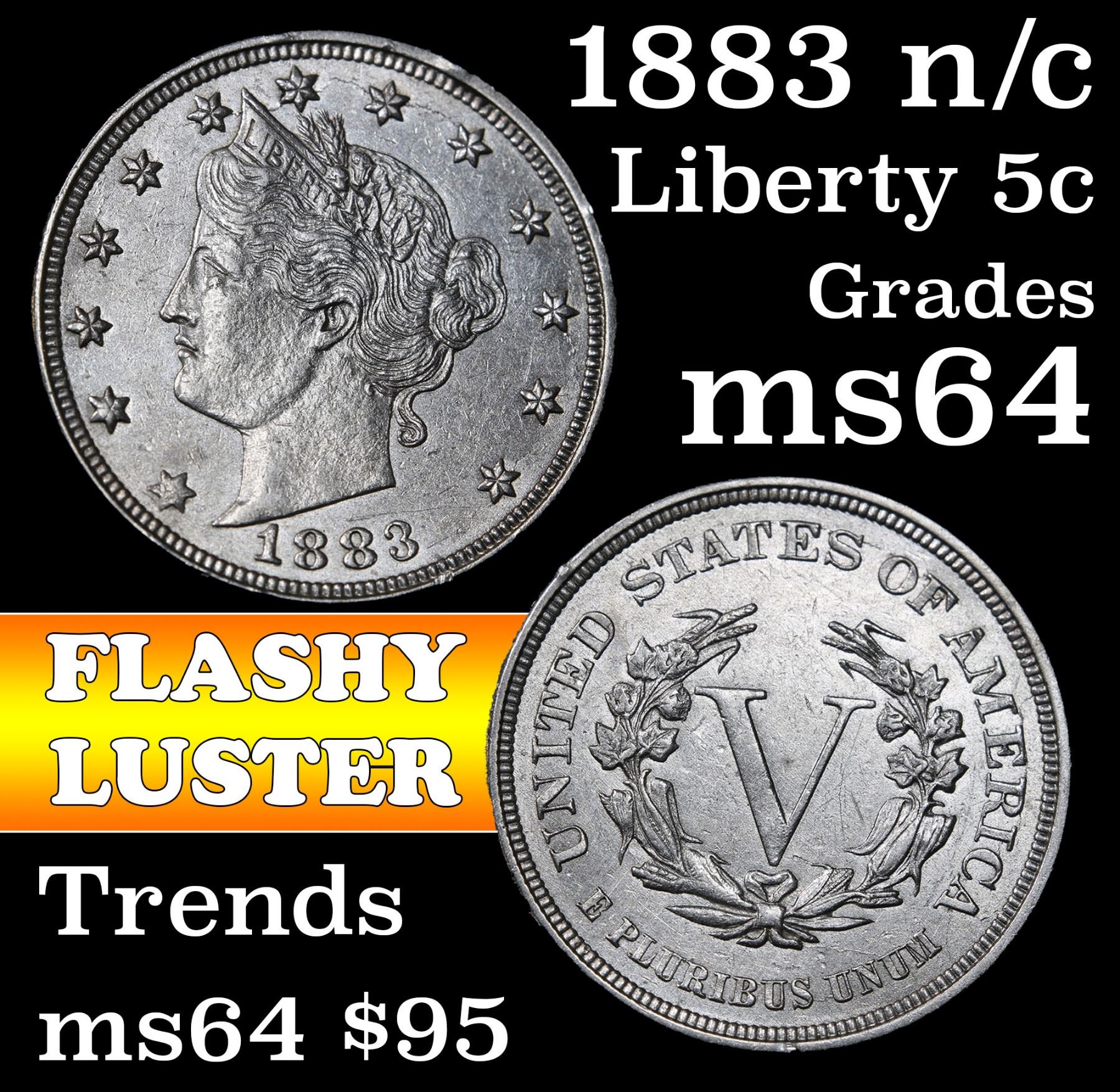1883 n/c Liberty Nickel 5c Grades Choice Unc.