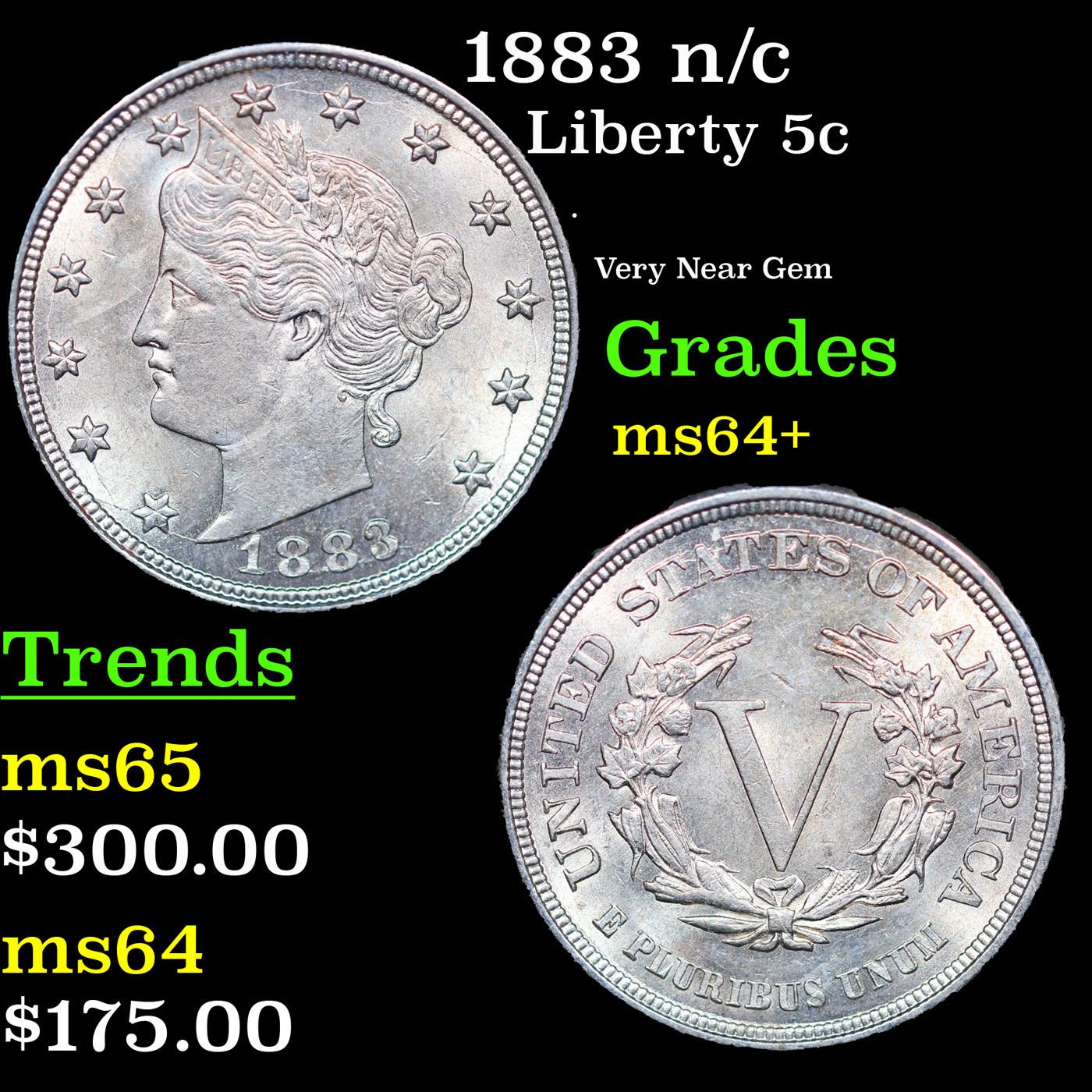 1883 n/c Liberty Nickel 5c Grades Choice+ Unc.